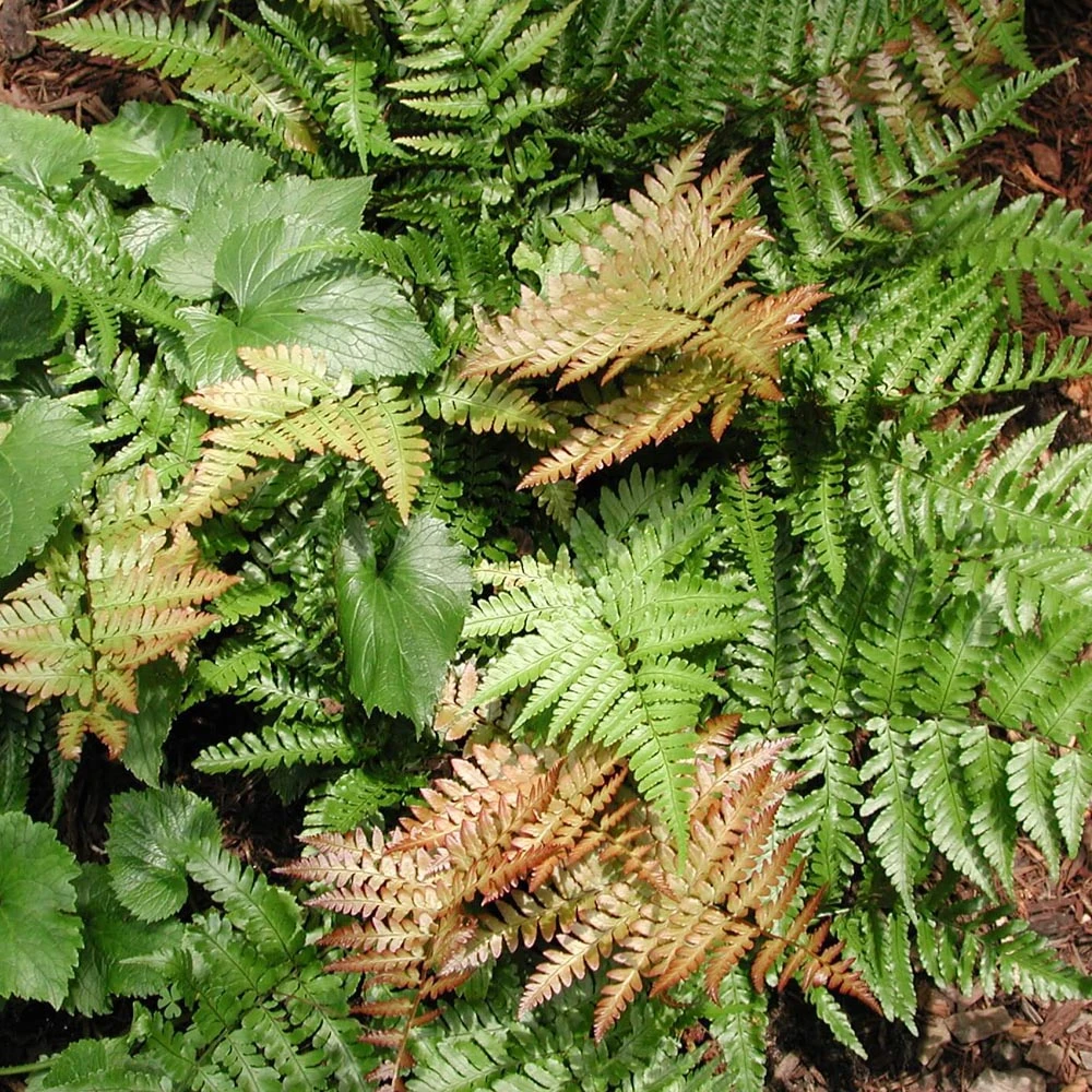 Dryopteris erythrosora ‘Brilliance’ Autumn Fern is a form that is brighter than the species. The young fronds of ‘Brilliance Autumn fern emerge a wonderful lustrous orange color and the mature green fronds maintain some of their orange coloration and shine. ‘Brilliance’ Autumn fern is a wonderful mid-sized, evergreen fern for a wide range of conditions. It is our most popular with landscapers.