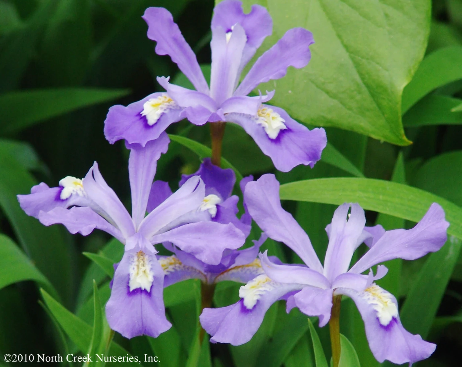 Iris cristata, or Crested Iris, has light blue to lavender miniature iris blooms held amongst handsome fans of short pale green strap-like leaves. Iris cristata is a fast grower and spreader. Crested Iris makes a nice ground cover or edger for perennial shade borders and rock garden or woodland garden.